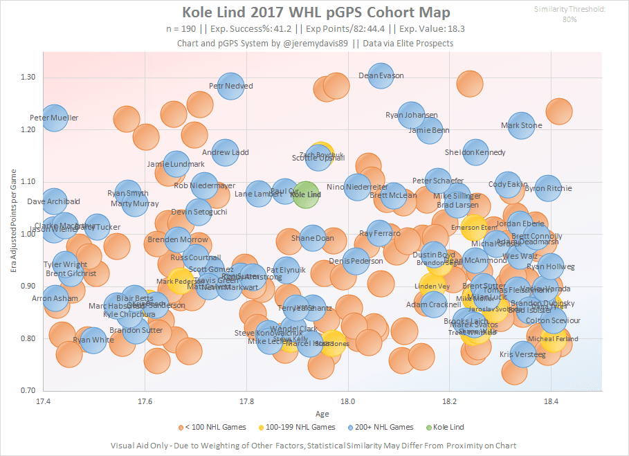 From a statistical perspective, Lind shows quite well, with an expected likelihood of success of 41%, with Shane Doan, Ryan Smyth, Ray Ferraro, and Rob Niedermeyer being his most successful comparables.