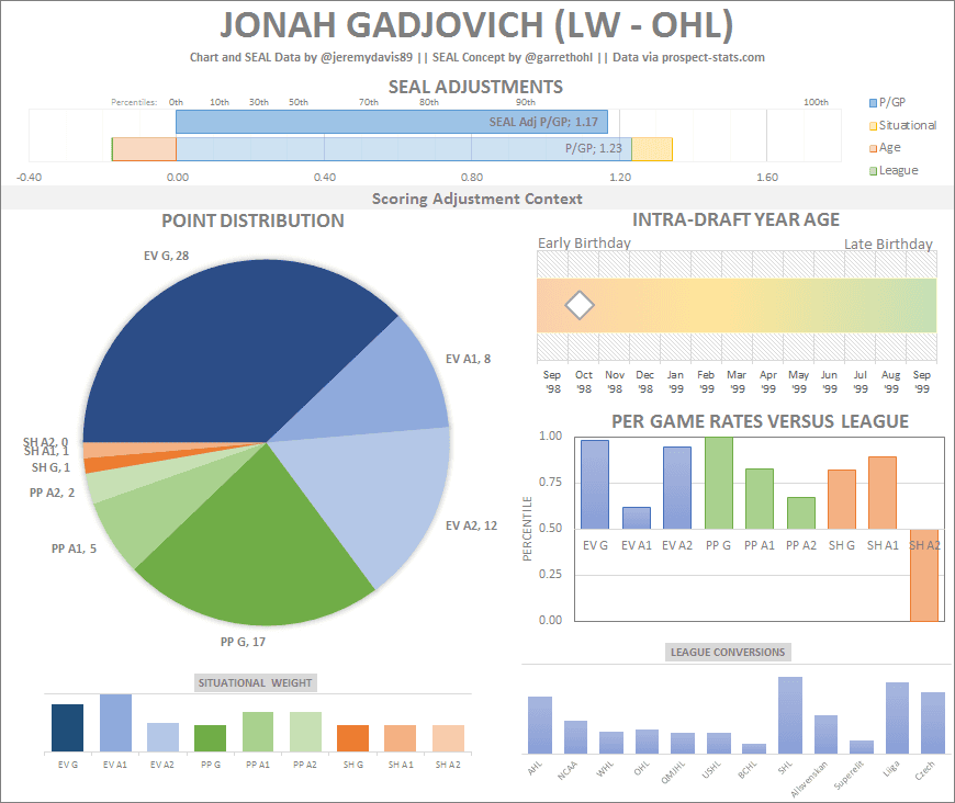 Gadjovich is a big left winger, measuring in at 6-foot-2, 209 pounds who chipped in 46 goals this past season, adding 28 assists for 74 points in 60 games. From the HockeyProspect.com Black Book: