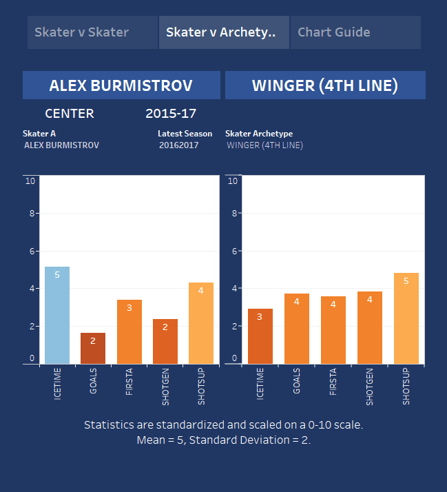 The dichotomy between his NHL appearances before and after his return to the KHL is interesting. Early in his career, he was a play driving winger with impressive shot metrics that couldn’t really score. In his second NHL stint, he’s still a winger who can’t really score, but now his on-ice numbers have gone in the tank as well. Even as a fourth liner, Burmistrov’s underlying metrics are less than impressive – last year he carried a Corsi-For percentage of 43.1%.