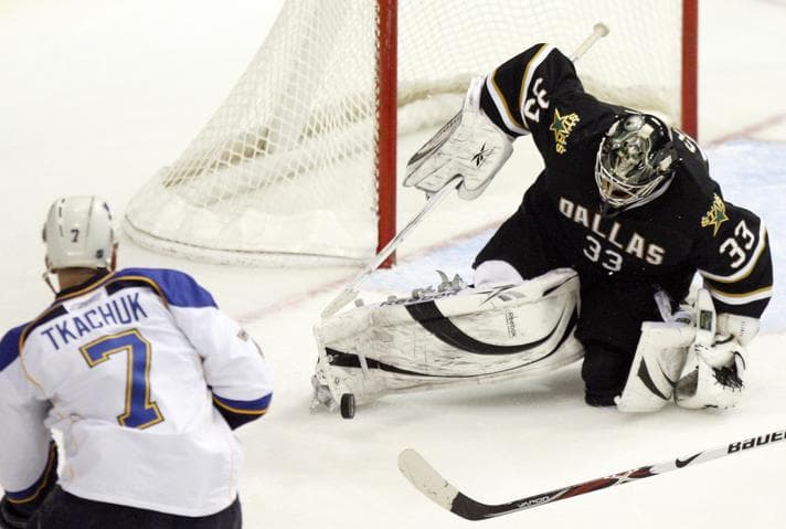 Matt Climie makes a toe-save against the St. Louis Blues in the Spring of 2009. He will backup Eddie Lack in Chicago this upcoming season.