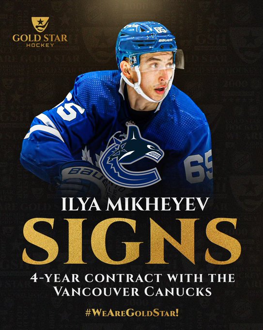 Ilya Mikheyev agrees to 4 year $4.75 AAV contract with Vancouver Canucks. #WeAreGoldStar!