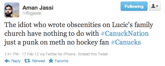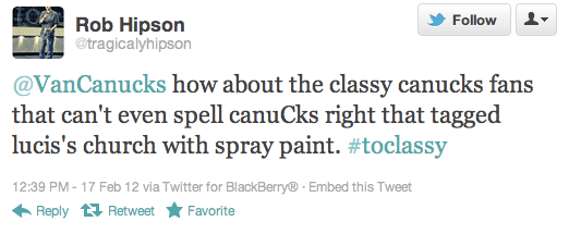 Idiocy, thy name is Rob Hipson. They may have spelled Canucks wrong, but I’m willing to bet they know how to spell “tragically”, “Lucic”, and are aware of the proper usage of the word “to” and “too”. Just a guess.