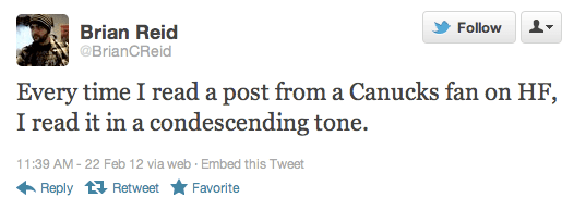 Hey everyone, welcome to "The #Canucks Week in Tweets!" Every week, I plan on bringing you the best of the Canucks on Twitter, from the reasonable to the totally ridiculous (okay, mostly ridiculous)! If you see a tweet you think should be featured here, get in touch with me at @cullenthecomic!