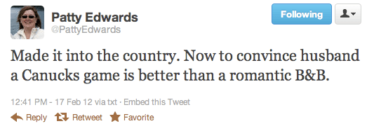 This sounds like a classic case of somebody doing it wrong. Sir, when you are on vacation with your wife, and she wants you to go watch a hockey game and celebrate the greatest game on Earth, by God man, YOU GO! So congratulations, Mr. Patty Edwards, you are the recipient of the Canucks Army official “You’re Doing It Wrong” Tweet of the Week Award! From all of us here at Canucks Army, we’d like to inform you that YOU’RE DOING IT WRONG.