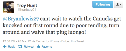 Hey everyone, welcome to "The #Canucks Week in Tweets!" Every week, I plan on bringing you the best of the Canucks on Twitter, from the reasonable to the totally ridiculous (okay, mostly ridiculous)! If you see a tweet you think should be featured here, get in touch with me at @cullenthecomic!