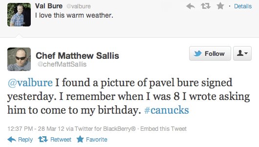 Man, really? Valeri Bure tweets about warm weather, and you have to go and rub it in his face that his brother was WAAAAAYYYYYY better than him at hockey, dated girls who were WAAAAAYYYYYY hotter than the one Valeri married, and you invited Pavel to your birthday and not Val?