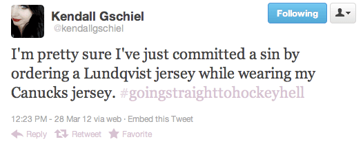They don’t call it H-E-double hockey sticks for nothing. You absolutely committed a sin, but so long as you didn’t commit the sin of getting Lundqvist’s name on a Canucks jersey, you’re probably alright. That would be unforgivable.