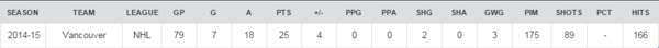 I would expect that the load is lessened for Dorsett next season, though. The Canucks acquired Prust to help share the workload with Dorsett and form the opposite flank on what should, in theory, be a defensively slanted fourth line. Assuming the parts remain constant, Dorsett should spend most of the season with Linden Vey as his pivot. The pair were carried a CorsiFor of nearly 48% last season, so there’s potential for them to form a more consistent and steady fourth unit.