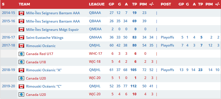 He followed that up with 105 points in his sophomore season, while finishing up with 112 points in a shortened season that saw him appear in just 52 games with Rimouski.