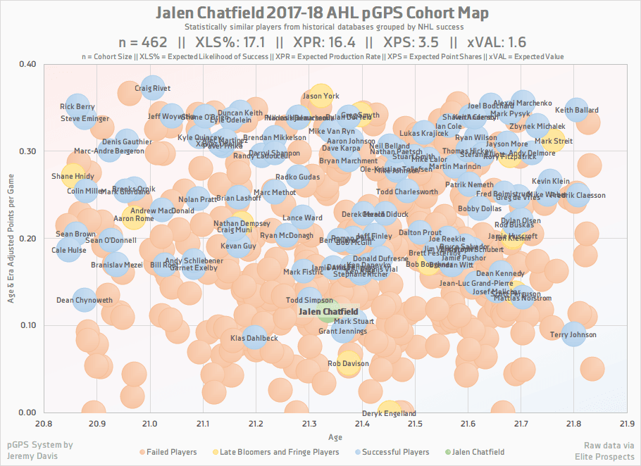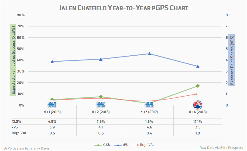 Overall, as you might expect, Chatfield’s profile suggests a future as a low-scoring but stable bottom-four defender could be in the cards if he can make the jump (which, at this point, is still a big “if”).