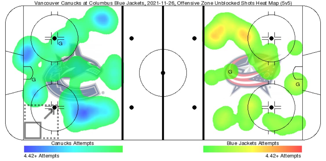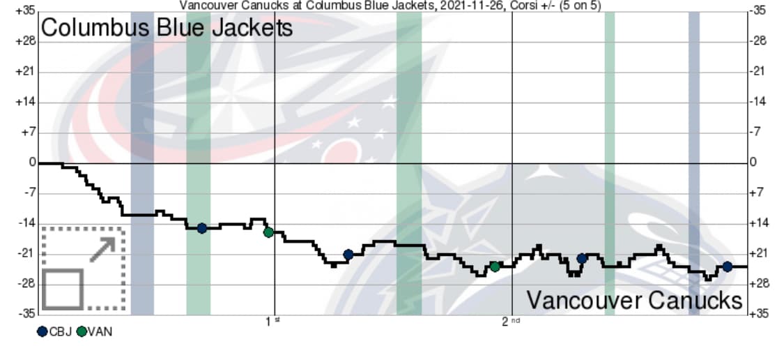 The Canucks fired their 30th shot on net at the time that the Blue Jackets had only 10 shots on net. The Blue Jackets still felt like they were the more dangerous team despite being outshot by a three-to-one rate.