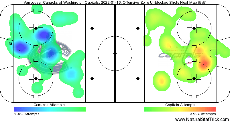 With a two-goal lead, the Canucks were keyed in on blocking shots and were all over the Caps’ shooters early in the period.