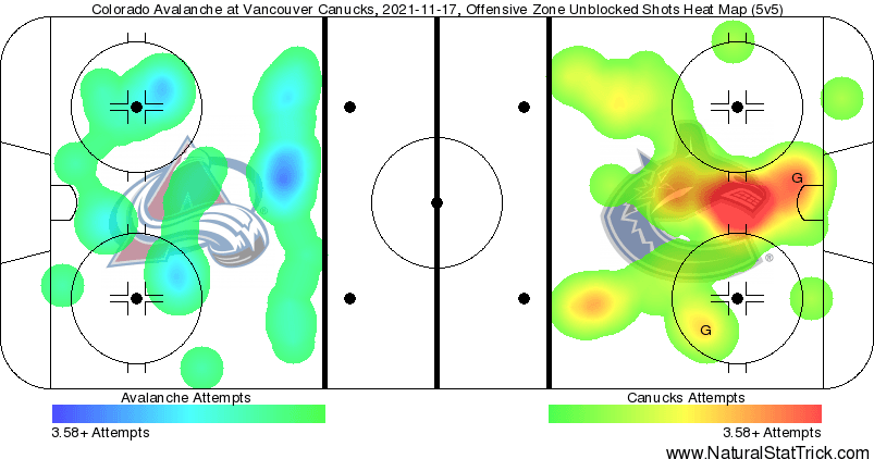 On the darker, more realistic side, the Canucks’ chances paled in quality compared to the Avalanche’s.