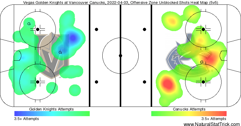The Canucks killed off the Golden Knights’ man-advantage, but as they so often have this season, the team was hemmed in their own end early and were bleeding chances early.