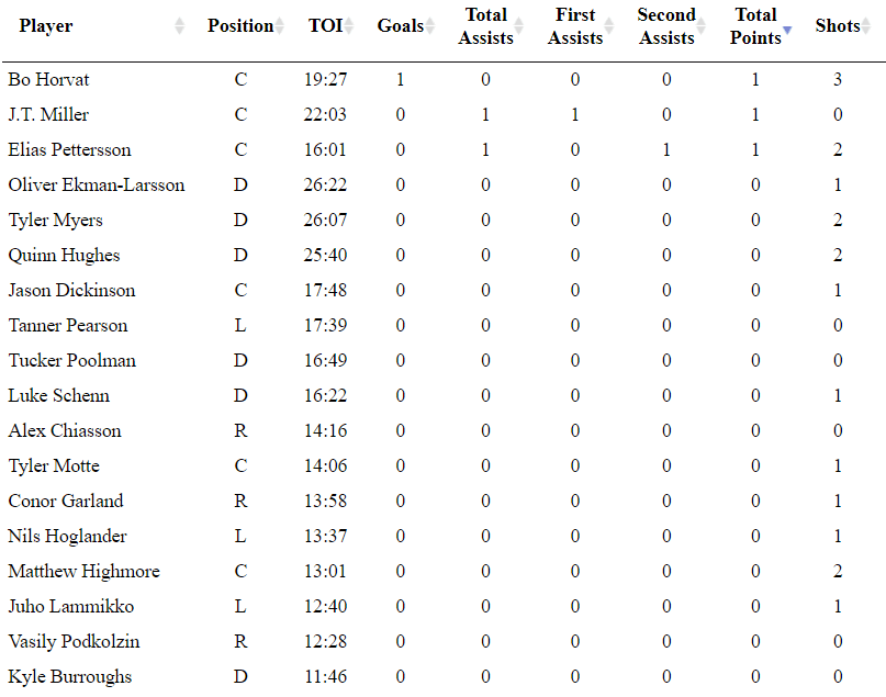 Halak made a pair of crucial saves and Pettersson had a pair of scoring chances. Horvat had a breakaway where he fired a shot that was saved by Quick.