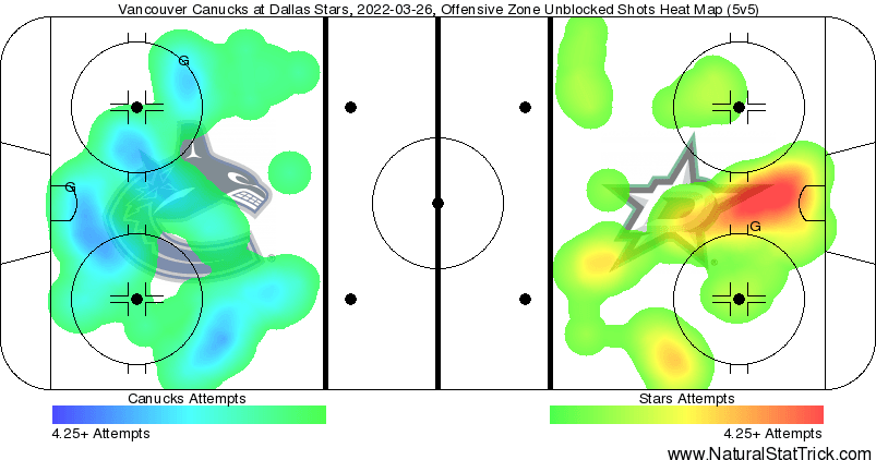 As mentioned, the Canucks had the first three shots of the game, but Dallas had the next eight.