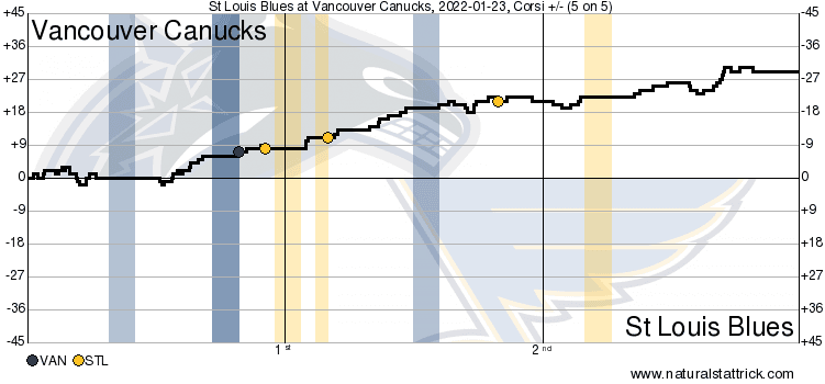 The Canucks didn’t get much generated on this power play attempt either, as the special teams battle continued to be won by the Blues.