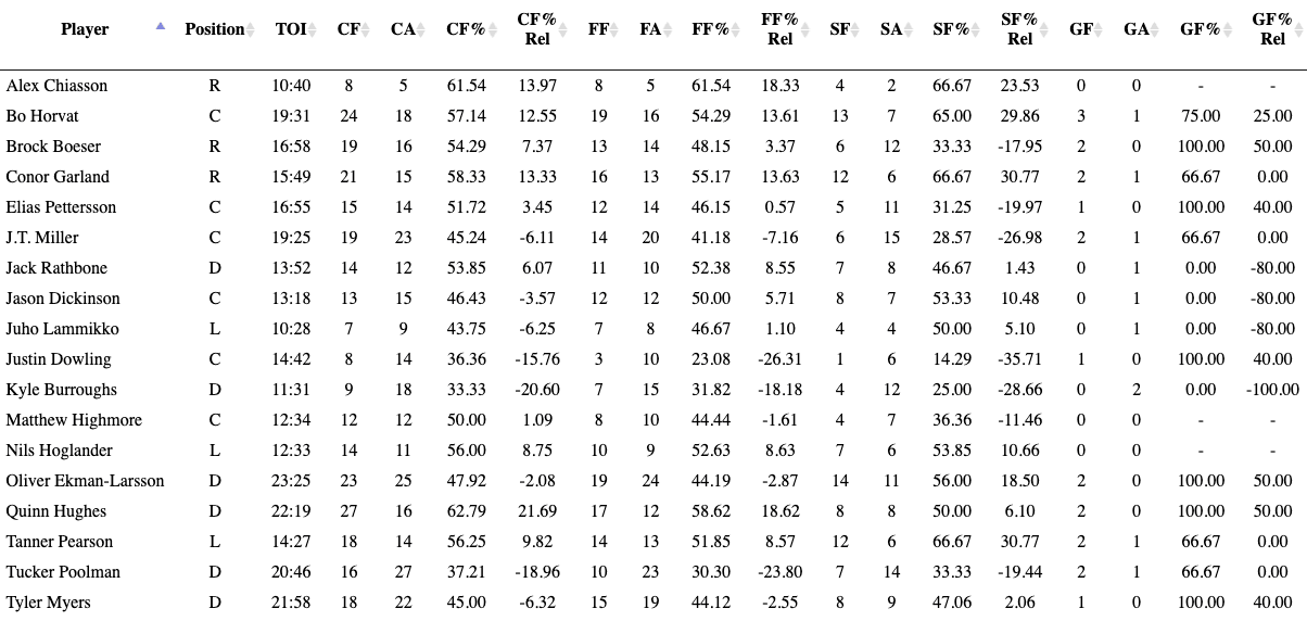 Conor Garland again was fantastic. He’s making a strong first impression on his teammates and Canucks fans. He pisses off his opponents, and has the scoring prowess to back it up. He was crucial to the victory tonight.