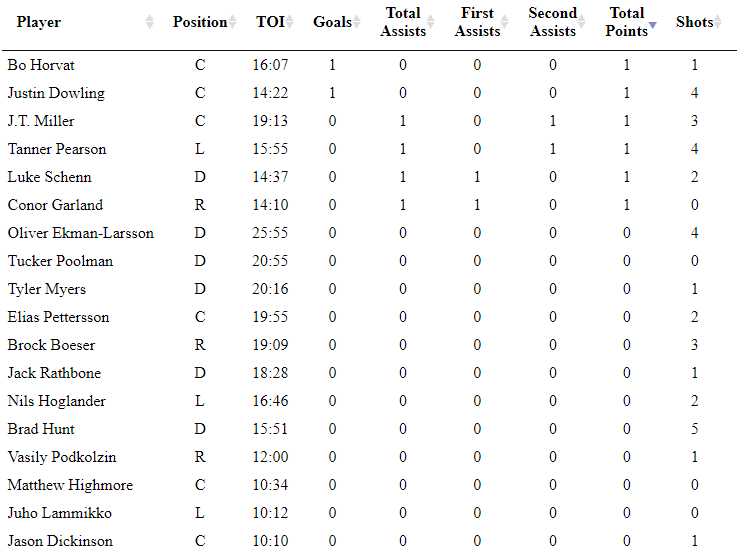 Jack Rathbone was the only player who stuck out in a positive way. He skated the puck through the neutral zone with confidence and was on the ice for half of the Canucks’ scoring chances. There was a lot of bad in this game but Rathbone was a lot of good.