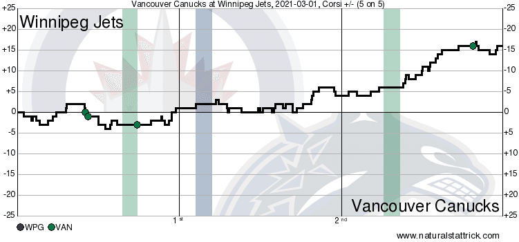 Gameflow from Canucks vs Jets March 1, 2021 (courtesy of naturalstattrick.com)