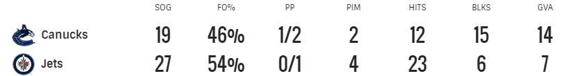 As one might expect, the Jets made a big push in the third, but Demko stood tall and made a number of remarkable saves. The Canucks also got another chance on the man advantage but did not use the new setup with Pettersson and Boeser on their strong sides. So much for that!