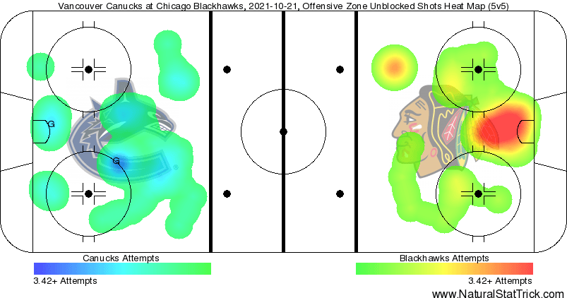 The Canucks were definitely better in this game but still had to lean on their goaltender to be their best player and secure them the victory. The Hawks had more shots, more scoring chances and controlled the majority of the Corsi as well. The Canucks were definitely better than they were in the previous two games but they still have a long way to go.