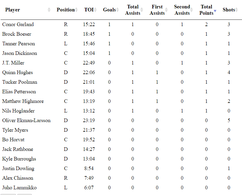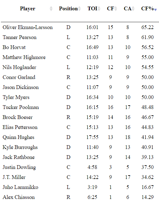 As for Green, he benched Podkolzin for the first time this season and his team ended up coming out with a win. Chiasson played under eight minutes and Lammikko played just over six. Green has obviously been shortening his bench in third periods and it has shown in each of the five games this season.