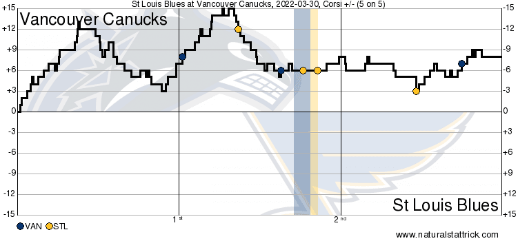 It took the Blues a while to get their feet under them, but once they did, they were in the driver’s seat and the Canucks quickly needed to regain control of this game.
