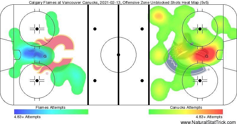 There just wasn’t enough traffic in the Flames’ crease through the opening 20, allowing Markstrom to easily pick off the Canucks’ blue line shots.
