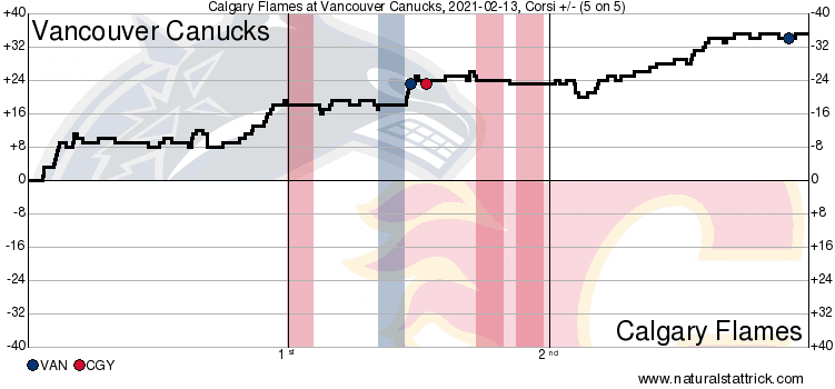 The Flames didn’t make it easy for him, but Demko got his deserved win tonight. Although the final SOG were quite tilted, Demko snatched several dangerous opportunities away from his opponents and didn’t have to worry about deflections off his own teammates. Happy for him.
