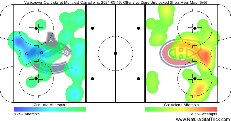 The Canadiens spent more time in the Canucks’ zone, but Demko remained the wall he is. The Canucks led in shots and goals going into the final period, but fans were very reasonably uncomfortable with the goal differential.