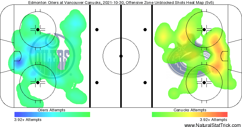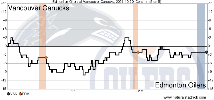 The Canucks struggled to cleanly break out of their own zone and made numerous sloppy giveaways that led to dangerous chances for the Oilers.
