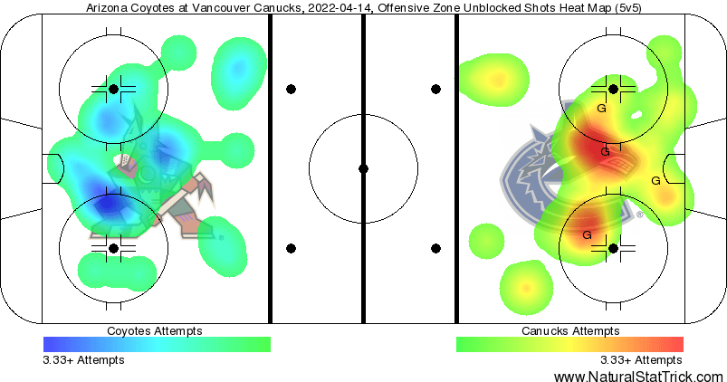 The Canucks were unable to convert but back at even strength, they kept up the pressure on the Coyotes until they took another penalty to give the Canucks another power play.