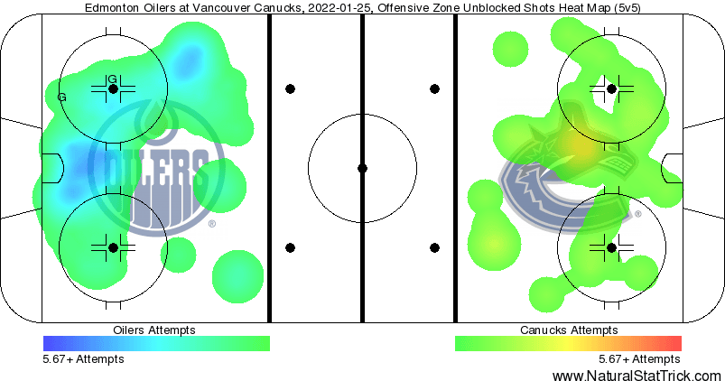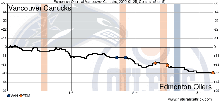 Even with a goaltender who was standing on his head for a good portion of the game, the Canucks simply weren’t going to win this game as they gave up 46 scoring chances against and were only able to achieve 23 scoring chances of their own. McDavid and Draisaitl can only be held off the scoresheet for so long when your team is getting 46 scoring chances.