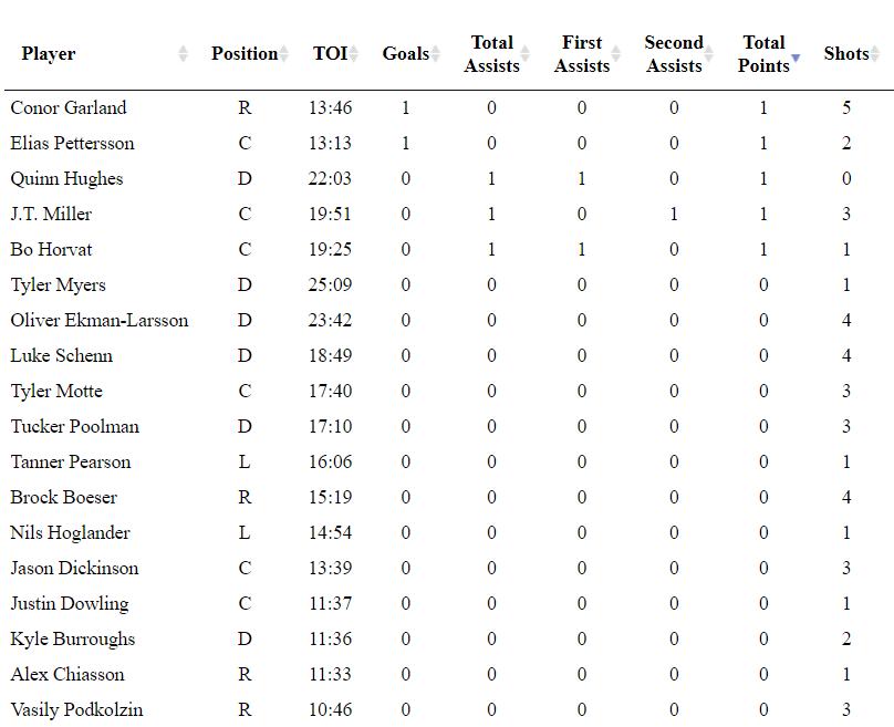 It was a much better night for Pettersson. It all started with a vintage Pettersson one-timer goal in the first period and he rode that confidence throughout the game. He was more engaged in the neutral zone and skated with pace on the forecheck.