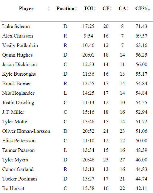 In a game that saw 52 minutes of five-on-five, it was a back and forth affair between two teams who sit at the bottom of the NHL standings. The Canucks were able to control the pace of play throughout the game. It felt like the Canucks had control of the game aside from the final 12 minutes of the second period.