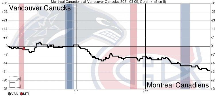 The Canadiens outshot the Canucks 12-6 in the second period and out-chanced the Canucks 17-8.
