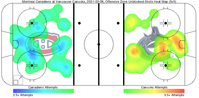 The Canucks had 11 shots in the third period while the Canadiens finished with nine.