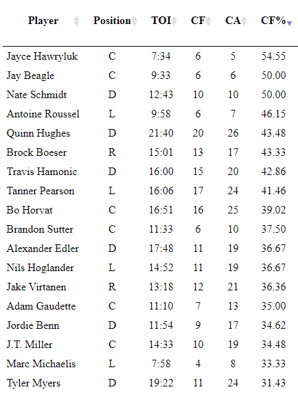 The Horvat line had some jump once again, and although Virtanen made a mistake early on, he looked engaged at 5-on-5 as his line controlled possession in the offensive zone and generated a couple of scoring chances in the first period.