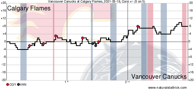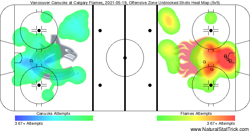The Canucks couldn’t generate anything of substance against the Flames PK, and it was back to even strength with roughly three minutes remaining.