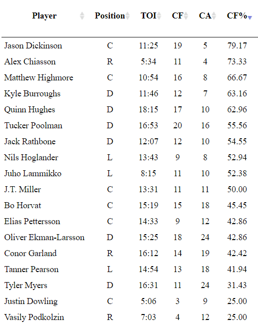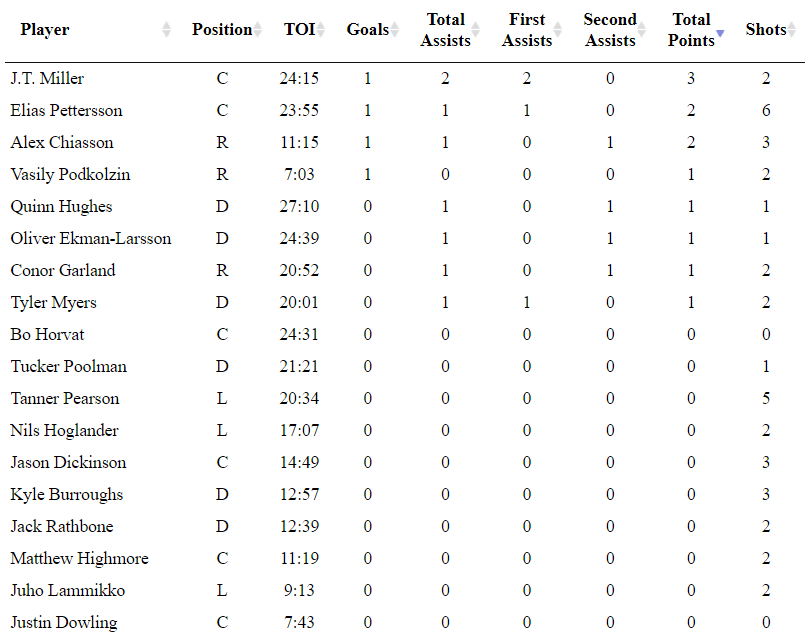 One of the big stories going into this game was seeing that Vasily Podkolzin was going to be playing on a line with Elias Pettersson and J.T. Miller. We will see how long this one lasts as it was a massive opportunity for the youngster.