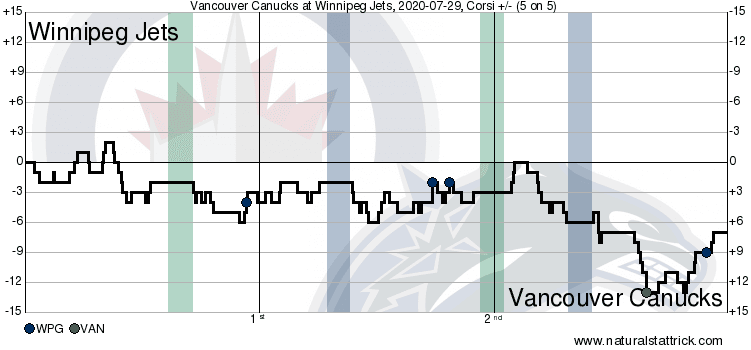 At the halfway point of the game, the Canucks were outshooting the Jets 18-11. The line of Tanner Pearson, Brock Boeser and Bo Horvat was the Canucks best through 30 minutes. They were outshooting the Jets by a count of six to zero and had a Corsi for percentage of 88.9 at the halfway mark.