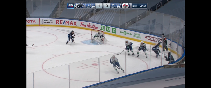 With that goal, the lead was cut down to two and the Canucks now trailed the Jets 3-1 late in the third period.