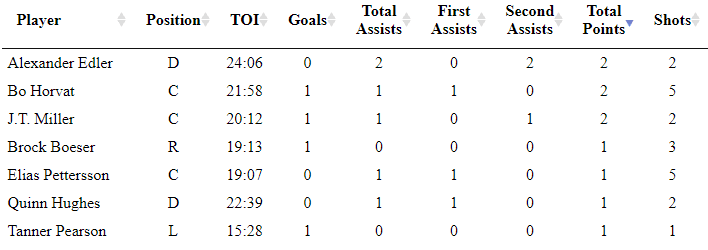 The Canucks formula to win is going to be their top six players being able to carry the team while the depth works through battles in the bottom six. Tonight that happened as the top players came to play.
