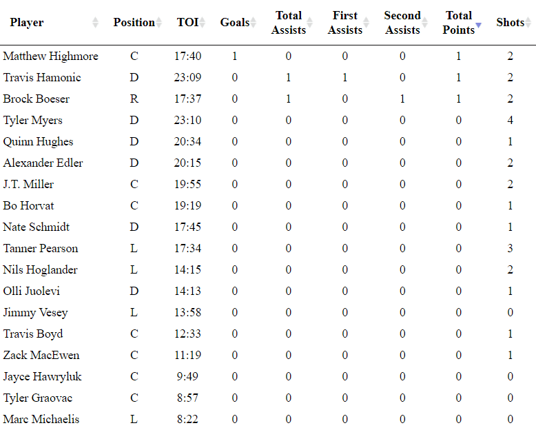 As for the goalies in this game, Thatcher Demko was up against Jacob Markstrom for the Thursday night special.