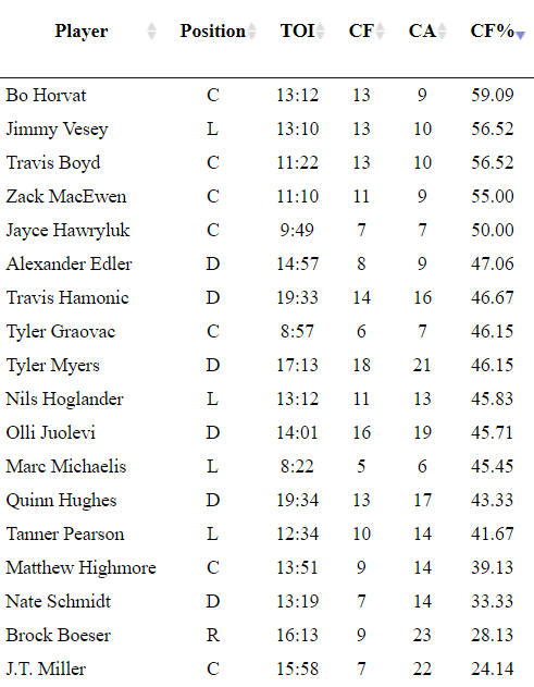 The power play group was strange as it was a half-and-half mix that included Nils Höglander and Nate Schmidt but no Brock Boeser.