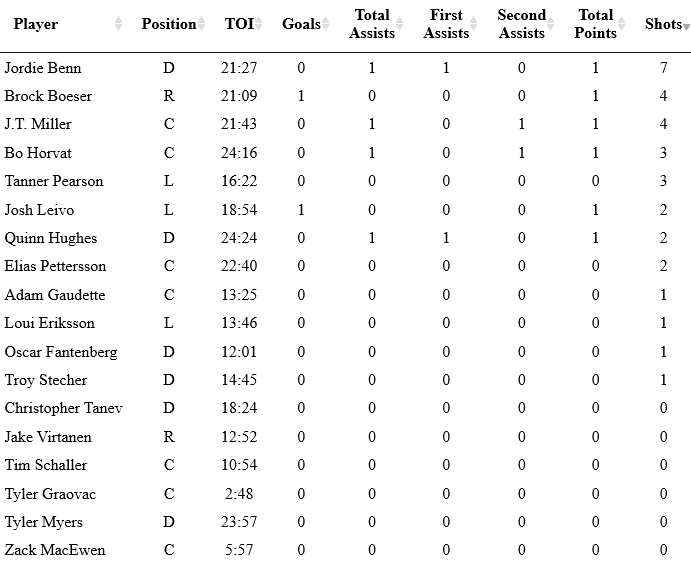 Tyler Graovac wouldn’t return to the game as Brendan Batchelor of Sportsnet 650 would report. This would mean that Horvat, Miller and Pettersson would have to play a little extra in the third period.
