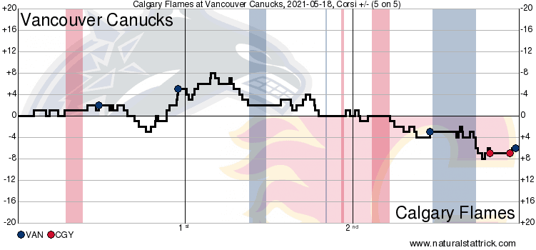 The Flames were controlling the possession and the shot share but the Canucks were the only team with a goal after 15 minutes of play. Neither team had a ton of scoring chances as they were both skating well on the backcheck and struggling to make consecutive passes in the offensive zone.