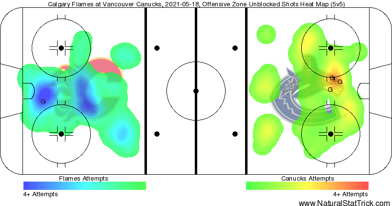 The Flames outshot the Canucks 40-24 but the Canucks ended up with a 4-2 win.