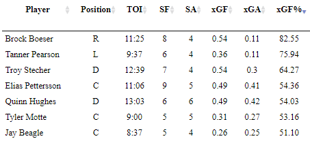 Thesee were the best Canucks in the first 40 minutes according to expected goals for percentage.